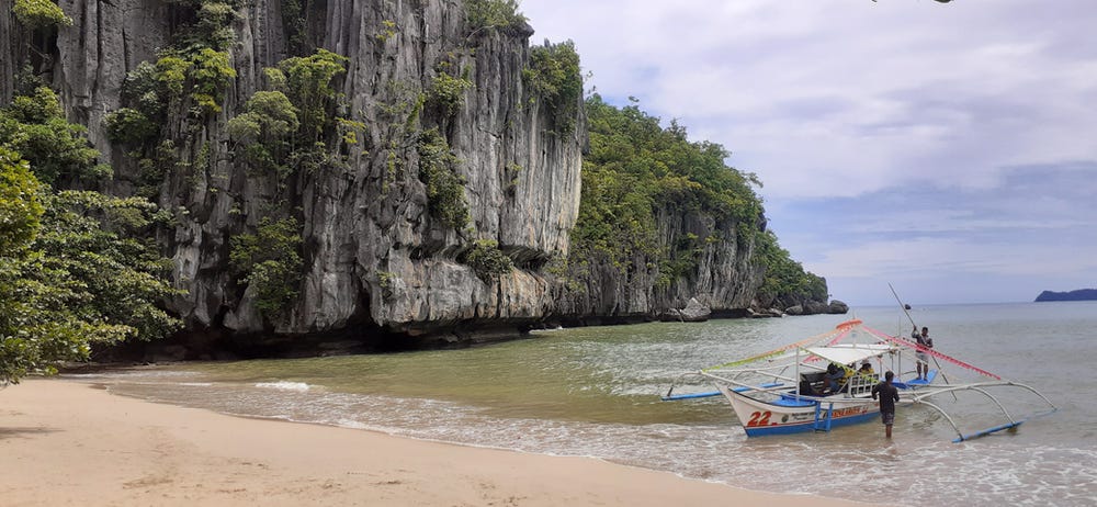 A motorboat ride from Sabah beach past ashy limestone crags, leads you to the tiny sandy island from where you can access the mouth of the Puerto Princesa subterranean river. This is the main attraction in the Palawan island province in the Philippines. Image credits: Devayani Khare.