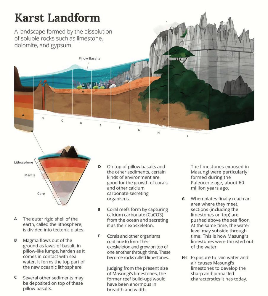 The fascinating process by which karst landscapes are formed, from their watery beginning to their rain-carved present. Image credits: Masungi Georeserve