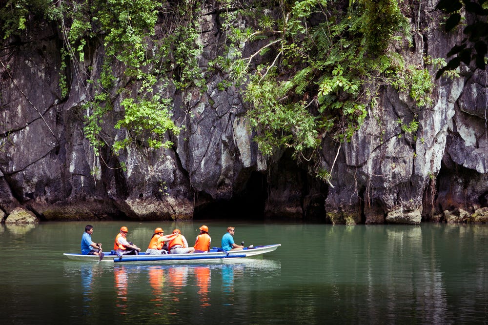 An outrigger canoe gently takes you into the maw of the limestone labyrinth created by the underground Puerto Princesa river. Image credits: Benson Kua (CC BY-SA, via Wikimedia Commons)